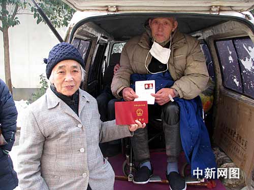 鑒于張大爺?shù)奶厥馇闆r,鄭州市中原區(qū)民政局婚姻登記處專門為其開辟的“綠色通道”,陳敏說:“他們的情況比較特殊,我們婚姻登記處專門派一名工作人員去為他們服務(wù),了卻老人的心愿!