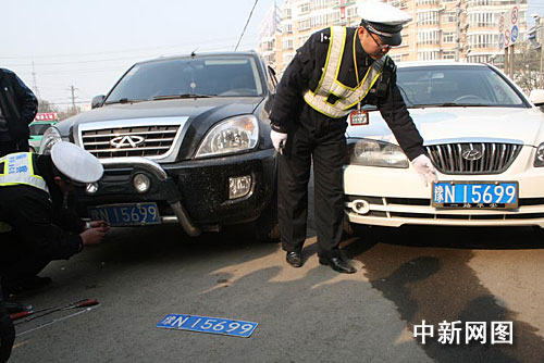 據(jù)交警二大隊(duì)嚴(yán)管街中隊(duì)長(zhǎng)梁輝介紹,象這種套牌的嚴(yán)重交通違法行為,應(yīng)將車輛暫扣,收繳非法號(hào)牌,并處于2000元以下罰款。完