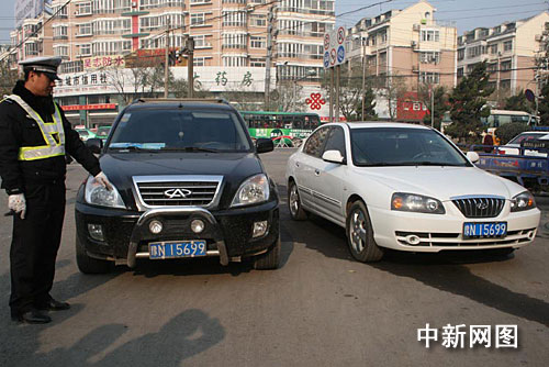 當(dāng)日上午9時(shí)10分,正在文化路崗執(zhí)勤的交警二大隊(duì)民警李磊看到一中年人急匆匆向他跑來(lái),“民警同志,快攔住這輛等紅燈的奇瑞車,它掛的牌照和我的一樣,是一輛套牌車!泵窬(dāng)事人的手指的方向望去,果然見(jiàn)一前一后停著兩輛轎車,前車是一輛黑色奇瑞,后面是一輛白色現(xiàn)代,而兩車的號(hào)牌都是予N15699。