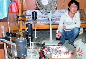 7月初,江門警方將“地主”販賣毒品的線索轉(zhuǎn)給佛山市公安局刑警支隊,但“地主”聞風(fēng)潛伏,停止了制販毒活動。專案民警經(jīng)過近4個月的深入摸查,發(fā)現(xiàn)該團(tuán)伙不但販賣毒品,還利用家庭式作坊從事制造毒品活動。