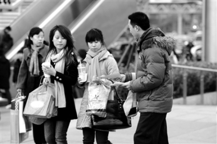 昨天下午4點(diǎn)多,小偉又來(lái)到西單文化廣場(chǎng),手捏一疊厚厚的粉色A4紙張,向經(jīng)過(guò)的路人散發(fā)著自己制作的“尋人啟事”,短短幾分鐘內(nèi),就發(fā)出去十幾張,大部分女孩都將傳單拿走,只有一位女孩在看完傳單上的內(nèi)容后,又還給小偉,讓他哭笑不得。十幾分鐘后,小偉被城管執(zhí)法人員以“任何單位和個(gè)人不得擅自在公眾場(chǎng)合散發(fā)宣傳品”為由帶走,進(jìn)行了教育。 (王浩嬌)