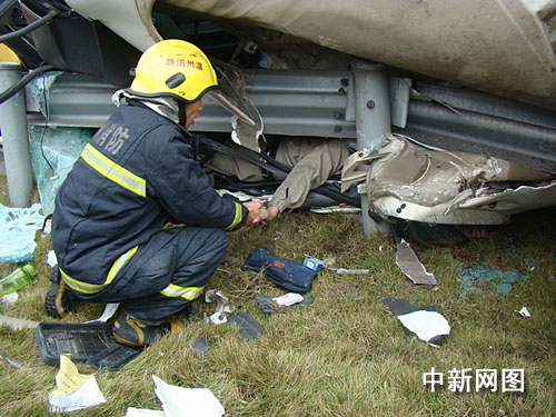 就在救援工作正一步一步緊張的展開(kāi)時(shí)候,救援人員發(fā)現(xiàn),貨車(chē)油箱漏油十分嚴(yán)重,若不及時(shí)處置,遇到破拆的火星后果不堪設(shè)想,指揮員當(dāng)即命令使用壓縮空氣泡沫槍?zhuān)诰仍F(xiàn)場(chǎng)有油污的地方附上一層泡沫,防止二次災(zāi)害的發(fā)生。經(jīng)過(guò)消防官兵30分鐘的緊張施救,第一名被困駕駛員成功救出,送往醫(yī)院救治。11時(shí)許,另一名被困人員也被成功救出,但經(jīng)現(xiàn)場(chǎng)醫(yī)生確定已經(jīng)死亡。