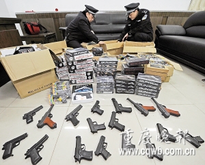 犯罪嫌疑人交代,仿真手槍從我市某縣市場流出,準(zhǔn)備運(yùn)往四川遂寧銷售。