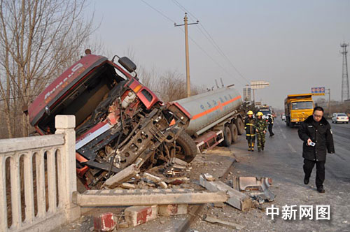 中新網洛陽1月27日電 (記者 李金輝 通訊員 王力)1月26日下午15時許,在洛陽市新安縣310國道磁澗鎮(zhèn)磁澗橋上,一輛滿載30噸氫氧化鈉的槽車不慎側翻,發(fā)生嚴重泄漏,周圍居民的生命安全受到極大威脅。