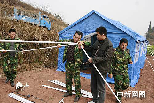 中新網(wǎng)遂寧安居1月31日電(霍潺 劉賢 吳晟偉 徐千舟) 本網(wǎng)記者在四川遂寧市地震現(xiàn)場(chǎng)了解到,目前相關(guān)部門(mén)正在加緊為受災(zāi)民眾搭建臨時(shí)安置帳篷。