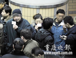 突然,一個(gè)很地道的京腔傳來(lái):“有沒(méi)有人到成都,我有兩張今天到成都的票!钡珱](méi)人理會(huì)。過(guò)了一會(huì),那個(gè)票販又回來(lái)了,這次他喊的是“有沒(méi)有人到重慶,我有兩張五號(hào)到重慶的票!绷⒓次簧偃,記者與票販搭上了話。