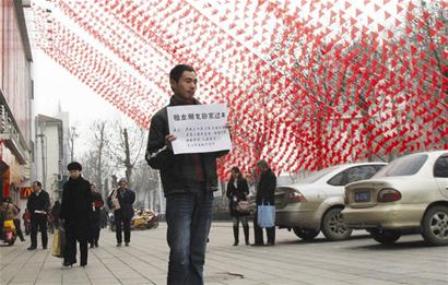 “租女朋友回家過年!”昨日上午,一名小伙在青山紅鋼城舉出這樣一個(gè)小廣告。“我曾哄母親說早談女朋友了,母親非要我今年帶回去,租女友實(shí)在是迫不得已!”昨日,舉小廣告的小伙潘小青難為情地對(duì)記者說。據(jù)潘小青介紹,1995年他20歲時(shí),從江西老家來到武漢,在一所藝術(shù)學(xué)校學(xué)習(xí)聲樂,畢業(yè)后開始在青山紅鋼城一帶做小生意,近年來先后經(jīng)營過小酒吧、鞋店和服裝店等。今年1月24日,他把店子轉(zhuǎn)讓出去,準(zhǔn)備回江西老家與親人團(tuán)聚!白馀鸦丶,既不是有什么非分之想,也不是為了炒作!”潘小青明確表示,租女友回家過年,是為了讓母親過得開心。潘小青的母親今年54歲,患有腰椎間盤突出,身體狀況非常不好。眼看潘小青的同齡人紛紛結(jié)婚生子,可潘小青一直單身,做母親的非常著急。