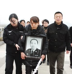 3月27日上午10時(shí)許,在徐州市殯儀館的追悼大廳內(nèi),陳勛的700多名戰(zhàn)友來了,陳勛的親友來了,陳勛的街坊四鄰也來了,他們要送陳勛最后一程。送別陳勛的,不但有其疼愛的女兒,還有70多歲滿頭白發(fā)的母親,其情其景,令人動(dòng)容。