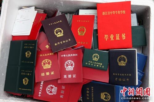 中新網(wǎng)舟山4月4日電(記者 趙曄嬌 通訊員 夏方)2日中午,浙江舟山市定海警方搗毀一特大造假證窩點(diǎn),繳獲數(shù)千本半成品假證件,涉及駕駛證、結(jié)婚證、房產(chǎn)證、軍官證、健康證、運(yùn)輸證等30多個(gè)種類,可謂包羅萬(wàn)象。其中,以各類學(xué)歷證書、英語(yǔ)等級(jí)證書出貨量最大。