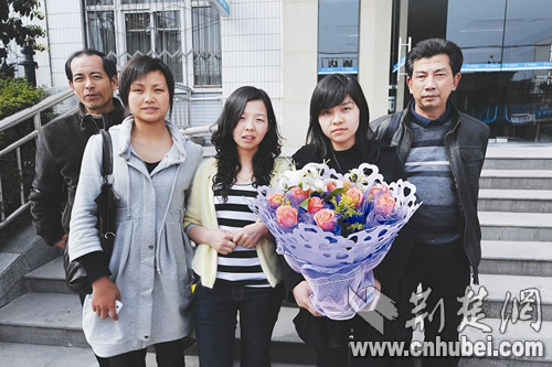 4月2日晚11時(shí)許,接到女兒被解救的消息后,3日凌晨1時(shí)40分,盧紅的父親(右一)和其朋友迅速?gòu)暮硝妨晔械募抑谐霭l(fā)。凌晨4時(shí),在株洲火車站買了站票,于上午8時(shí)40分匆匆趕到武漢。這已是女兒失蹤后盧先生第三次來漢。