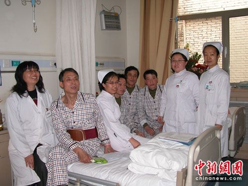 中新網(wǎng)4月11日電(聶晶梅 )在此間醫(yī)務(wù)人員日夜精心護(hù)理治療中,60名王家?guī)X獲救工友正在康復(fù)中。今天,在山西醫(yī)科大學(xué)第一醫(yī)院綜合科1病室里,工友們?cè)谂c醫(yī)護(hù)人員合影。