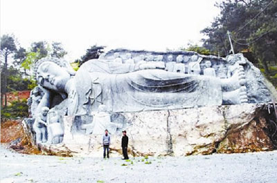 近日,一尊長33米、高11.5米的青石臥佛在長樂市潭頭鎮(zhèn)邊蘭村錦鋰巖建成。這尊巨型臥佛就地取材,由一塊天然整體青石巖現(xiàn)場雕刻而成,在大臥佛旁邊,還有12尊高2.8米的小佛像。這尊臥佛2007年初開始雕刻,歷經(jīng)3年,由惠安崇武著名雕刻大師和雕刻高手設計,20多人雕刻而成。