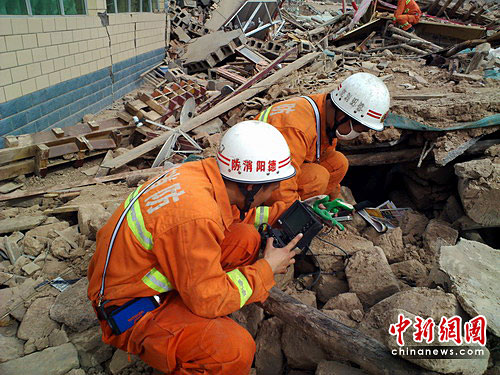 17日,按照四川省消防總隊高雨祥總隊長的現(xiàn)場指揮和部署,全省300多名官兵分成4個中隊80多個救援小組,以結(jié)古鎮(zhèn)為中心向各街道、鄉(xiāng)鎮(zhèn)蔓延,入鄉(xiāng)進村,仔細搜索被困群眾。