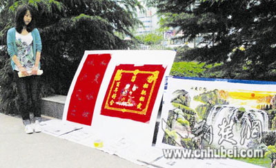 4月22日下午,在武漢光谷廣場的空地上,一名擺攤賣十字繡的美女大學(xué)生引起路人的關(guān)注。她在吆喝賣她的嫁妝,理由是為玉樹災(zāi)區(qū)獻(xiàn)愛心,不過一幅十字繡堅(jiān)持賣3.8萬元,讓感興趣的人聽完直感慨,“這也太貴了吧!