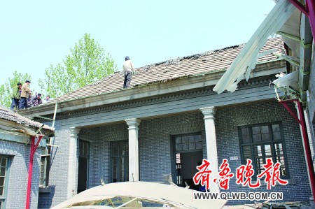 4月30日上午,濟(jì)南市中山公園東片區(qū)拆遷工作在緊張進(jìn)行。經(jīng)四路343號大院里,有幾個(gè)人翻墻入院爬到屋頂上揭瓦,濟(jì)南市體育局所屬的濟(jì)南市民體質(zhì)監(jiān)測中心工作人員正在阻止他們上到房頂揭瓦!跋旅嫖葑永镞有人呢,怎么就這么拆房?”