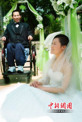 2008年,李美玲主動提出結(jié)婚,卻讓范進(jìn)陷入了沉思?紤]到不能給她所要的正常生活,范進(jìn)非常難過,但李美玲的堅(jiān)持打消了他的顧慮,二人終于領(lǐng)取了結(jié)婚證。在一次聊天中,妻子憧憬的說道,“如果我們能拍一套婚紗照掛在床頭多好呀!”此時(shí),范進(jìn)只是笑笑,他深知這一個(gè)小小的愿望對既沒錢又站不起來的自己是個(gè)奢望,但此事深深記在了他心里!拔沂裁炊冀o不了她,只希望能圓了她這個(gè)夢!”范進(jìn)最后對記者說。