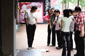 “相親男”的征婚行為引來(lái)不少路人觀看,其中也不乏一些年輕女子,不過(guò)她們均一笑置之。