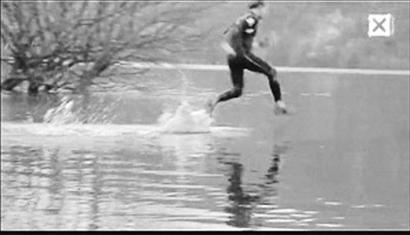 網(wǎng)上文章稱:“3名外國(guó)小伙在一個(gè)視頻里把中國(guó)武俠小說里的輕功 ‘水上漂’展現(xiàn)得淋漓盡致。視頻中,他們?cè)谄咸蜒酪粋(gè)湖上賽跑,在水面上奔跑了50多米后才落水。他們聲稱這是一種挑戰(zhàn)地心引力理論的新型極限運(yùn)動(dòng)。視頻上傳到某網(wǎng)站后,在短短兩周內(nèi)吸引了超過200多萬(wàn)人次瀏覽。視頻看起來(lái)可信度極高,不少質(zhì)疑它是騙局的網(wǎng)友也不得不承認(rèn),它拍得很高明!