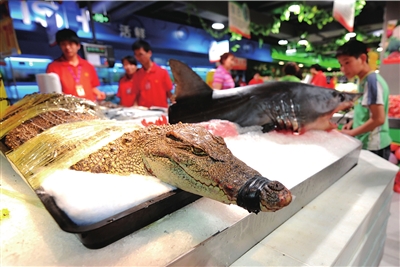 前天(21日),北京豐臺(tái)區(qū)鎮(zhèn)國(guó)寺北街永輝超市草橋店開業(yè),在生鮮賣場(chǎng)公開銷售一條兩米長(zhǎng)的鱷魚,鱷魚一天內(nèi)被分部位訂走,此舉引發(fā)市民爭(zhēng)議。