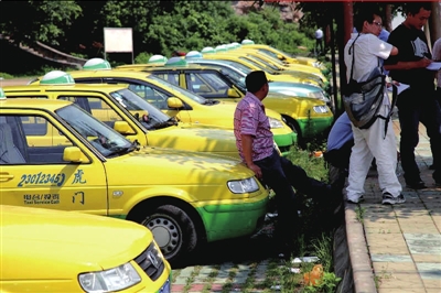 24日下午,東莞虎門威遠(yuǎn)炮臺附近的一處空曠停車場,數(shù)十輛“黃的”整齊地停放在一起。的哥老黃接受采訪時說,他們是東莞市公共的士有限公司的司機(jī),全公司在虎門營運(yùn)的車輛約有200輛,當(dāng)天全部閑放在虎門空曠地帶“趴窩”。原因是,從18日開始,虎門交通分局派出幾名社會人士充當(dāng)稽查人員,對出租車進(jìn)行明察暗訪,幾天內(nèi),東莞公共的士有限公司因不打表被罰的車輛就達(dá)30多輛!昂芏喽际潜蝗苏T導(dǎo)才沒有打表的!彼緳C(jī)們認(rèn)為,交通部門此“暗訪”其實(shí)就是“釣魚”執(zhí)法。24日下午,東莞市交通局虎門分局門口擠滿了前去辦理處罰手續(xù)的出租車司機(jī)。