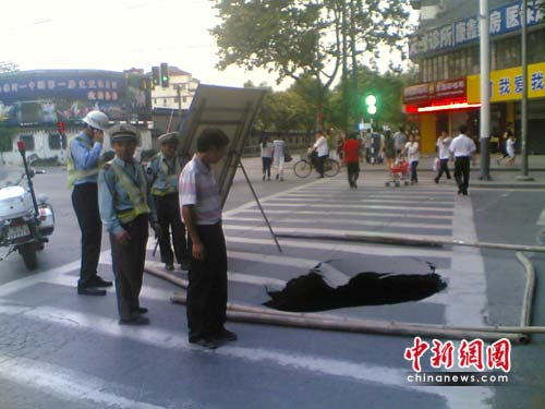中新網(wǎng)南京6月16日電(朱曉穎)今日下午6時(shí)40分許,位于南京鬧市區(qū)的夫子廟路口地面突然塌陷,露出長兩米、寬兩米、深三米的大坑,令人聯(lián)想起前期中國多個(gè)城市出現(xiàn)的“天坑”。江蘇省地震局副局長張振亞告訴記者,江蘇省、南京市地震部門目前沒有監(jiān)測(cè)到異常跡象,大坑的出現(xiàn)可能與施工有關(guān)。