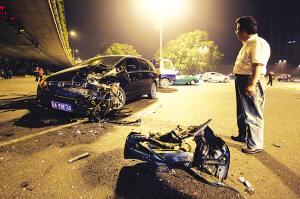 昨天凌晨零點(diǎn)左右,南京市鬧市區(qū)的漢中門(mén)廣場(chǎng)高架橋下,突然“砰”的一聲巨響,引起了過(guò)往車輛和行人的注意。事故現(xiàn)場(chǎng)位于漢中門(mén)廣場(chǎng)高架橋下西北側(cè),一輛價(jià)值近百萬(wàn)的新款寶馬Z4敞篷跑車,與一輛本田商務(wù)車相撞,F(xiàn)場(chǎng)的群眾只見(jiàn)寶馬跑車司機(jī)從車內(nèi)爬了出來(lái),臉上流著血僅受點(diǎn)輕傷,商務(wù)車司機(jī)更是無(wú)什么大礙,熱心市民們懸著的心才悄悄放下。