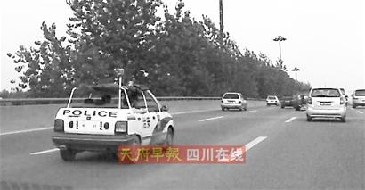 “奧拓車改成敞篷車,跟跑車一樣,太夸張了!”有網(wǎng)友回帖質(zhì)疑,稱如此改裝又沒上牌照的奧拓巡邏車有損成都形象。