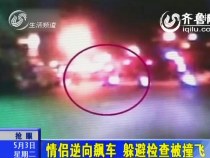實(shí)拍:情侶逆向飆車 為躲避檢查被撞飛