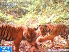 印尼首次在野外拍攝到罕見蘇門答臘虎群