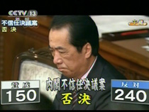 內(nèi)閣不信任案遭否決 菅直人繼續(xù)擔任日首相