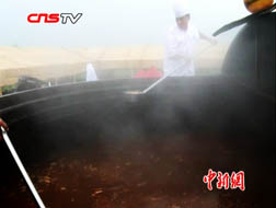 在現(xiàn)場修筑老子圣像的工人向記者透露,這座老子像貼金多達(dá)33公斤,否則不會全身金光閃閃。