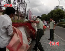 強(qiáng)臺(tái)風(fēng)“梅花”壓境 浙江臺(tái)州搶卸廣告牌
