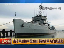 菲律賓炮艇撞擊中國(guó)漁船 菲軍方道歉