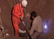消防官兵迅速用一個兩端直通的鐵桶固定好小孩被陷的位置,然后小心下到坑里,用鐵鍬和碗等工具小心地將沙子挖到外面。