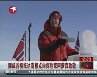 挪威首相抵達(dá)南極點(diǎn)向探險(xiǎn)家阿蒙森致敬