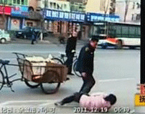 實(shí)拍:刮碰后轎車司機(jī)狠揍賣煎餅"三輪女"