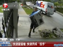 實拍:快遞員亂投郵包 30米外“投射入門”