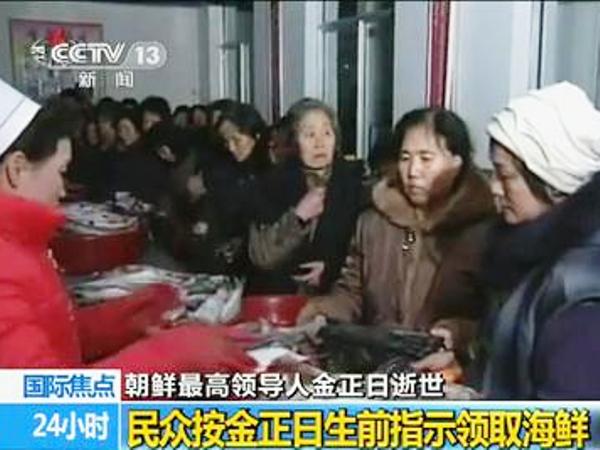 朝按金正日遺愿發(fā)海鮮 朝鮮人民含淚領取