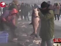 長春捕魚盛景:第一網(wǎng)十萬斤為冬捕開了好頭
