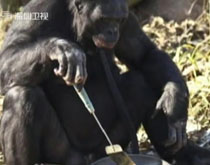 實(shí)拍:美國(guó)31歲大猩猩用打火機(jī)生火煮飯