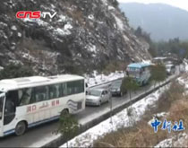 廣西北部多條公路大面積結(jié)冰 車(chē)輛艱難前行