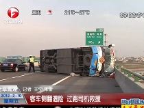 客車高速側(cè)翻遇險(xiǎn) 過路司機(jī)齊力救援