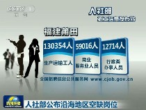 人社部公布沿海地區(qū)空缺崗位