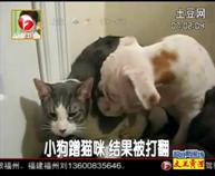 小狗蹭貓咪 結(jié)果被打翻