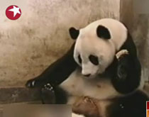 熊貓寶寶打噴嚏嚇到熊貓媽媽