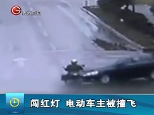 實(shí)拍:電動(dòng)車主闖紅燈 電動(dòng)車粉碎人被撞飛