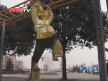 六旬老漢挑戰(zhàn)極限 身綁6桶油攀越4米長(zhǎng)梯