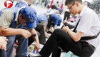 深圳公務員街頭為市民免費擦鞋