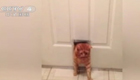 實拍肥貓鉆門洞 手誤無錯惹人笑