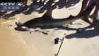 實拍鯊魚被拉上岸分娩后死亡